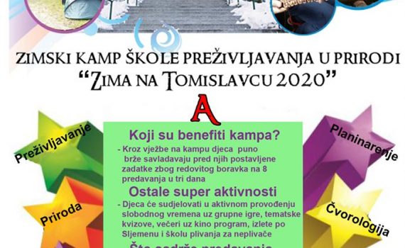 Zimski kamp na Sljemenu “Zima na Tomislavcu 2020” KADA: 07-09.01.2020. GDJE: Hotel “Tomislavov dom”, Sljeme TKO: Sva djeca starija od 8 godina ZAŠTO: Nemate kuda sa djecom? Mi imamo riješenje za Vas. Preživljavanje, priroda, paljenje vatre, čvorologija, izrada skloništa, vezanje čvorova i upotreba, upoznavanje tragova i životinja, planinarstvo i još […]