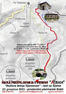 Uz puno dobre volje i sa smješkom na licu nastavljamo sa već tradicionalnom šetnjom Sljemenom povodom božićnih blagdana. Božićna šetnja će se ove godine održati u subotu 23.12.2023. s početkom u 09.00 sati. Kako svake godine tako i ove planiramo organiziranu, besplatnu Božićnu šetnju na Medvednici, od tunela Gračansko Dolje do planinarskog doma Runolist gdje ručkom častimo prvih 40 sudionika koji se prijave na naš događaj. Ruta hodnje ide preko crkve Majke Božje Sljemenske na vrhu, gjde u podne planiramo sudjelovati u bogoslužju povodom Božića. Tko ne želi biti prisutan na tom dijelu, može sa našim drugim instruktorom otići direktno na planinarski dom Runolist, pričekati drugi dio grupe koji je bio na Svetoj misi i tu nastavljamo druženje sa ručkom. Pokret je ispred tunela na Gračanskom dolju u 08.30, a planirani povratak je oko 16.00 sati na isto mjesto. Ukoliko se netko želi zadržati duže može se spustiti u vlastitoj režiji.